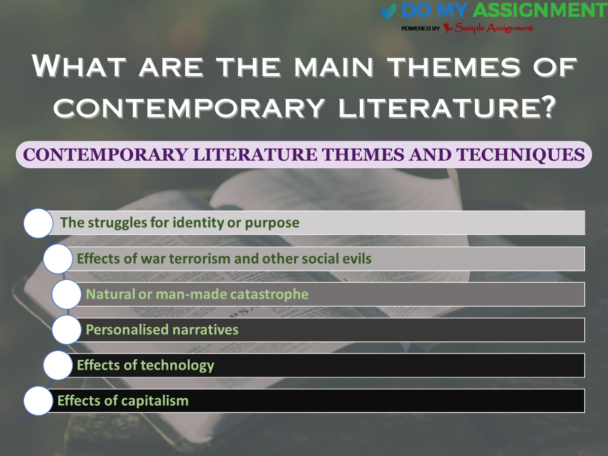 Are you a literature student grappling with assignments on the ever-evolving world of contemporary literature? Do you seek assistance understanding and analyzing the latest trends defining modern storytelling? Look no further! Our EdTech website is your one-stop destination for top-notch assignment help on "Trends in Contemporary Literature." Stop worrying and connect with Do My Assignment. We are here to assist you with all your assignments and assessments.